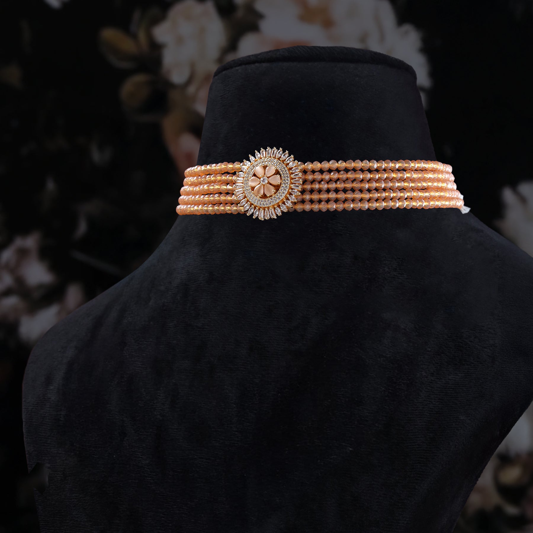 • Multi-strand peach-toned beads for richness